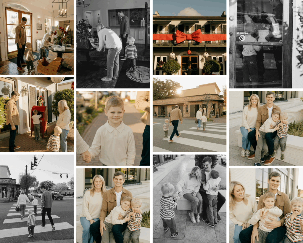 Every holiday season I offer Family Holiday Minis and this year I added a new option- Family Lifestyle Photos in Fairhope, Alabama! These are meant to be more documentary style and encourages families to spend time together in our beautiful downtown area – shopping, getting treatings, writing letters to Santa and making memories together. What better way to get into the holiday spirit?!